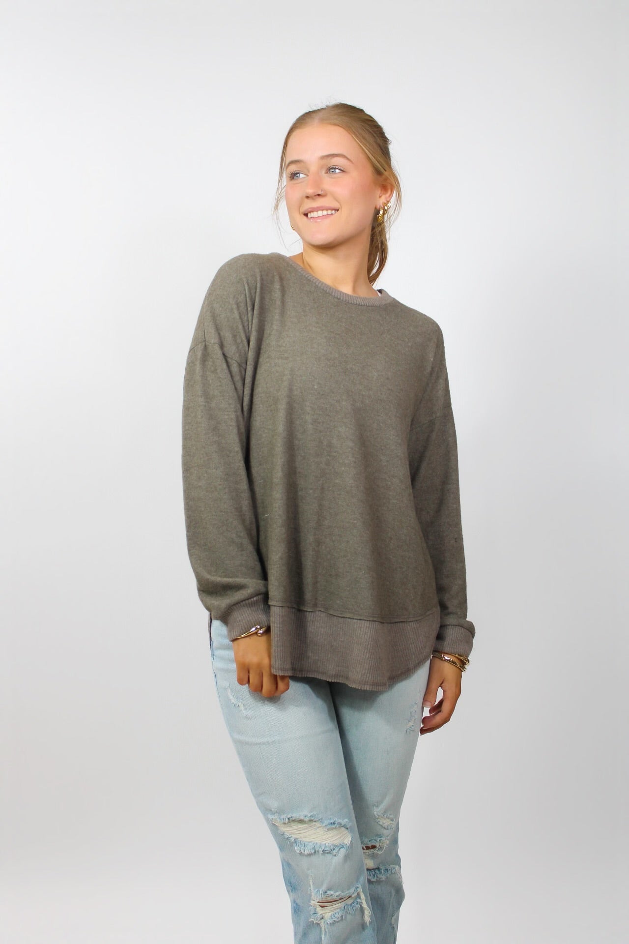 – Brown sweater.